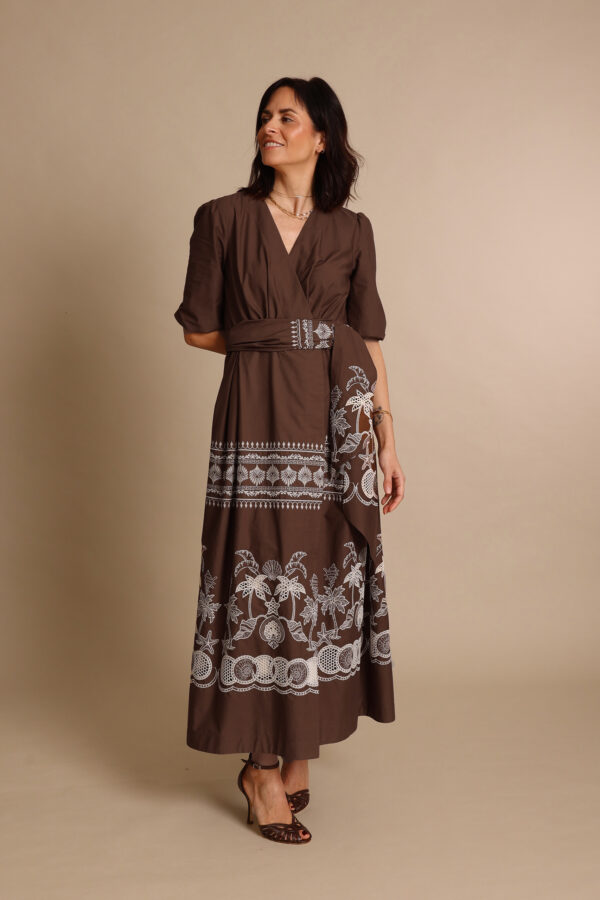 abito lungo ricamato marrone, noblesse