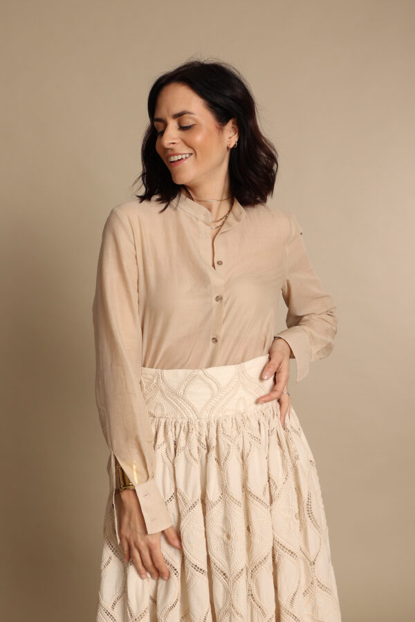 camicia coreana beige, impeccable