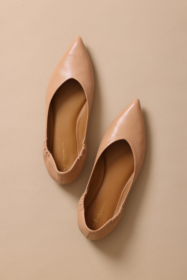 Ballerina beige in morbida nappa super soft, con scollatura a V e punta sfilata. Soletta in morbido memory che regala massimo comfort e grande piacevolezza ad ogni passo.