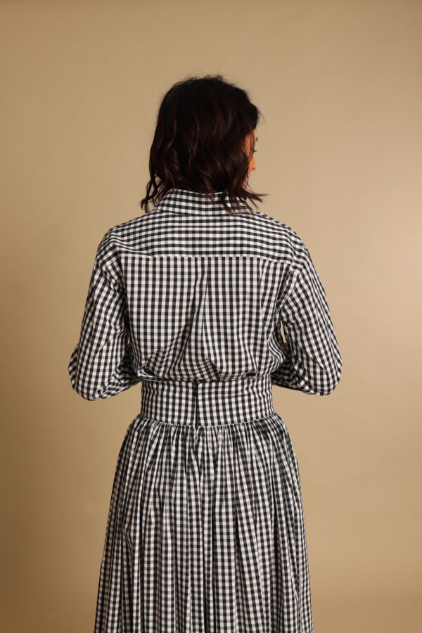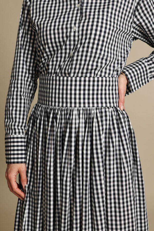 La nostra iconica camicia con vestibilità morbida, spalla scesa e bottoncini in madreperla anche in vichy bianco e nero. Perfetta con pantaloni e gonne è un pezzo indispensabile del guardaroba.