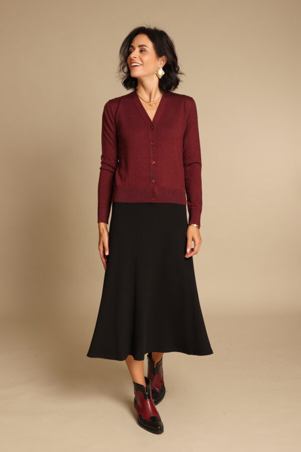 Cardigan in morbida lana merinos, con vestibilità asciutta. La lana merino è una delle fibre naturali più pregiate al mondo, apprezzata soprattutto per la sua morbidezza e le proprietà termoregolatrici che mantengono la pelle sempre asciutta. Si asciuga velocemente e spesso non necessita di stiratura.